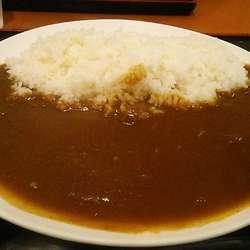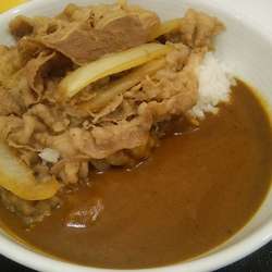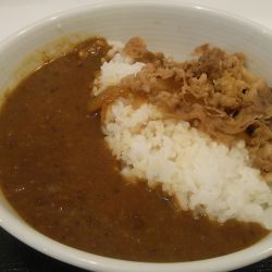 刻んだ野菜が入って少し辛めのルー。もちろん牛も載っています。
